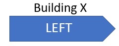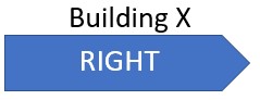 You are standing at a T junction and looking for a direction signage board to find the location of building X. Though unknown to you, the actual location of the building is to your right. You happen to find a signage as follows. Which of the following direction board will help in making decision faster and more accurate?